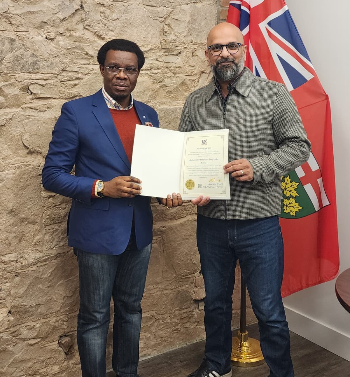 The certificate was presented through Hon. Zee Hamid, Member of Provincial Parliament for Milton, acknowledging the dedication, vision, and positive impact UNWCD continues to make on the international stage.